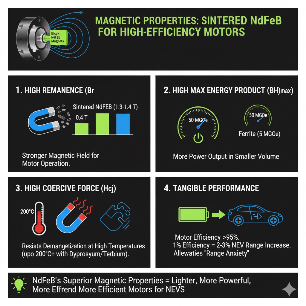 কোন চৌম্বকীয় বৈশিষ্ট্যগুলি উচ্চ-দক্ষ মোটরগুলির জন্য সিন্টারযুক্ত NdFeB চুম্বকগুলিকে অপরিবর্তনীয় করে তোলে?